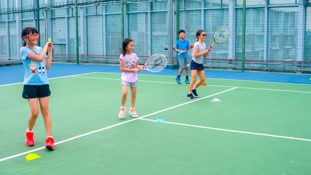 When you learn tennis, you pick up a social sport to play with friends for life! Beginners learn basic strokes and techniques then practice them in mini games, while experienced kids level up through drills and point play.